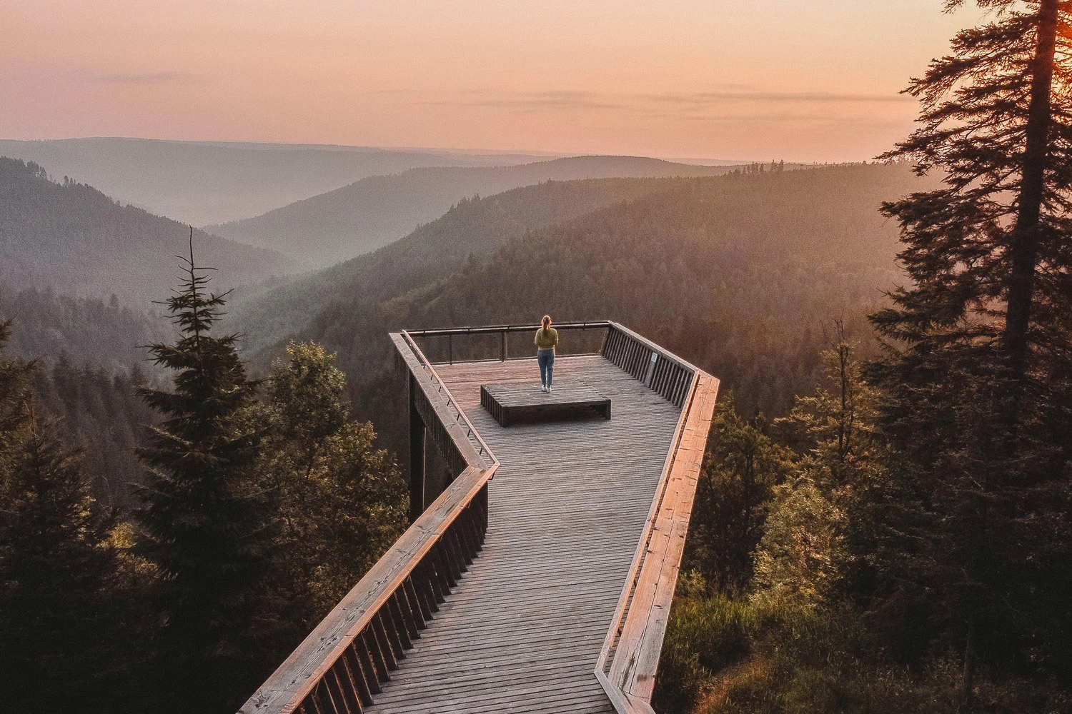 Der Name „Schwarzwald“ leitet sich vom dichten, geschlossenen Blätterdach der Fichten und Tannen ab, unter das kaum Licht dringt. Doch dahinter verbirgt sich eine überraschende Vielfalt: Laubwälder, Almwiesen, Torfmoore und Flüsse mit eiskaltem Wasser. Der höchste Punkt ist der Feldberg (1493 m), ein beliebtes Ziel für Skifahrer und Gleitschirmflieger.